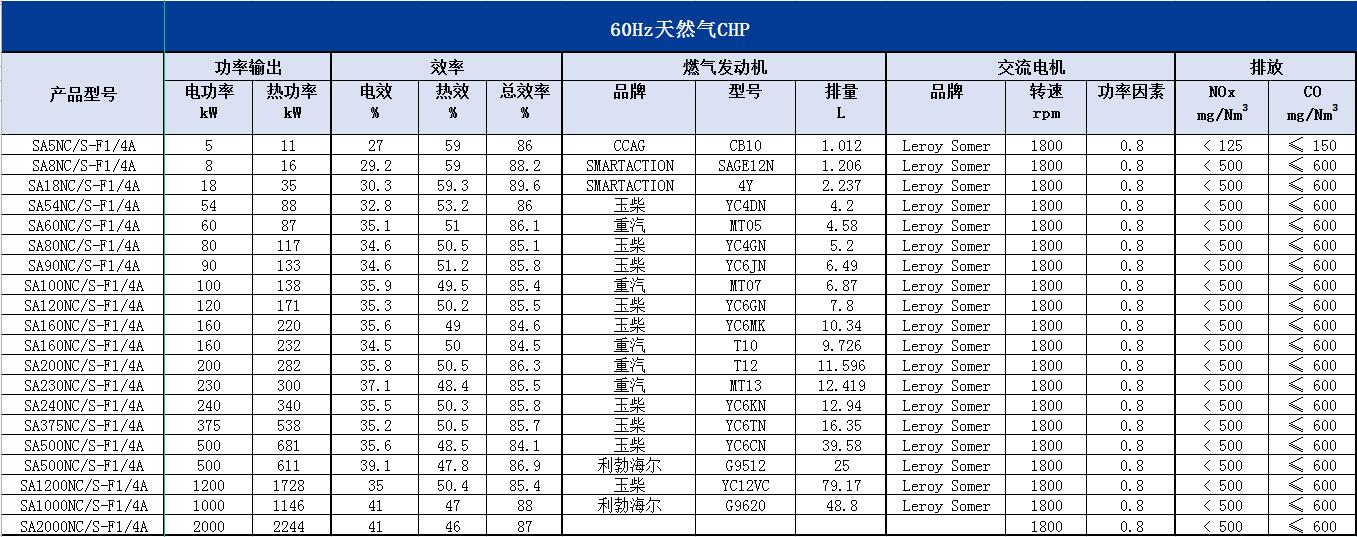 60Hz天然氣CHP